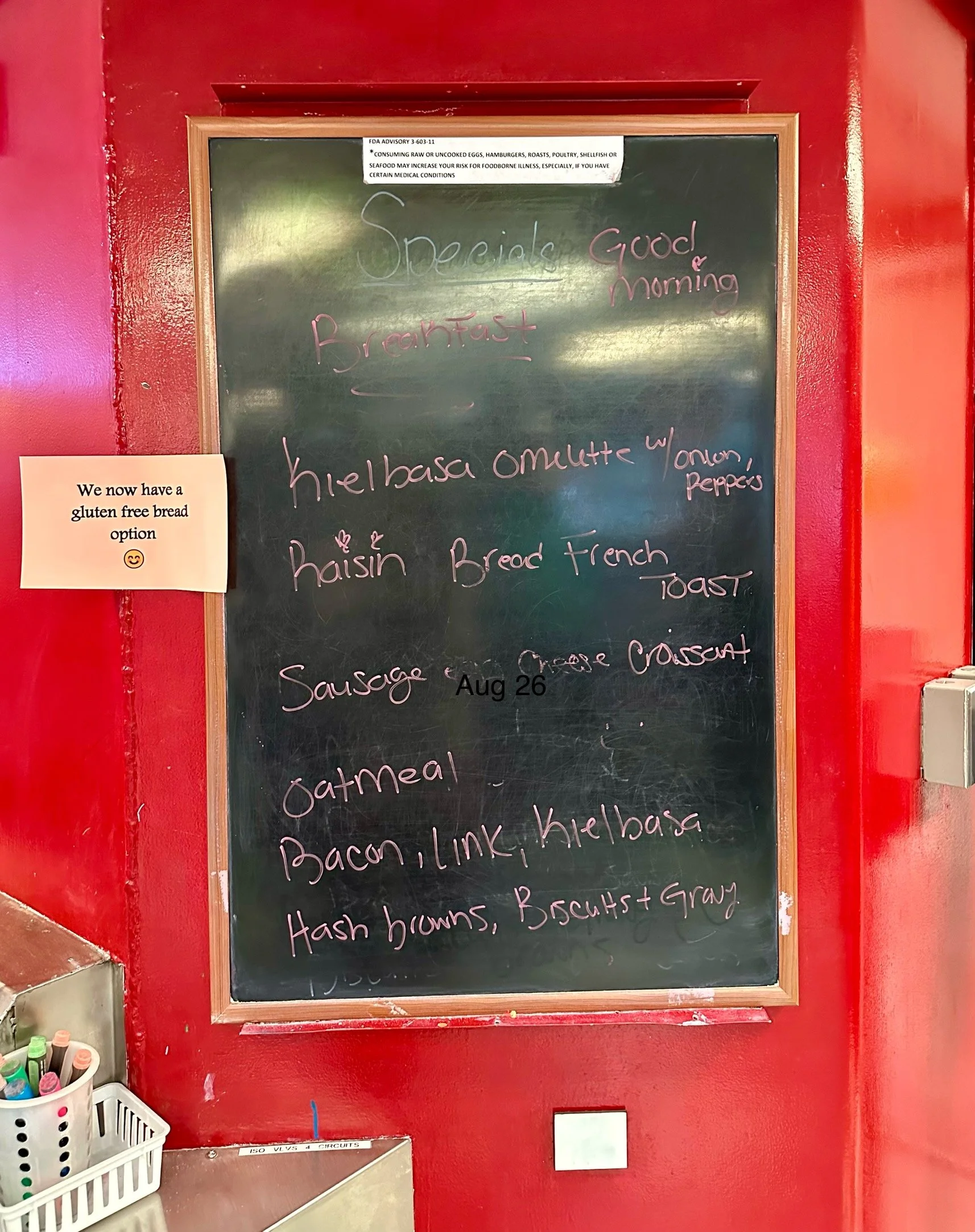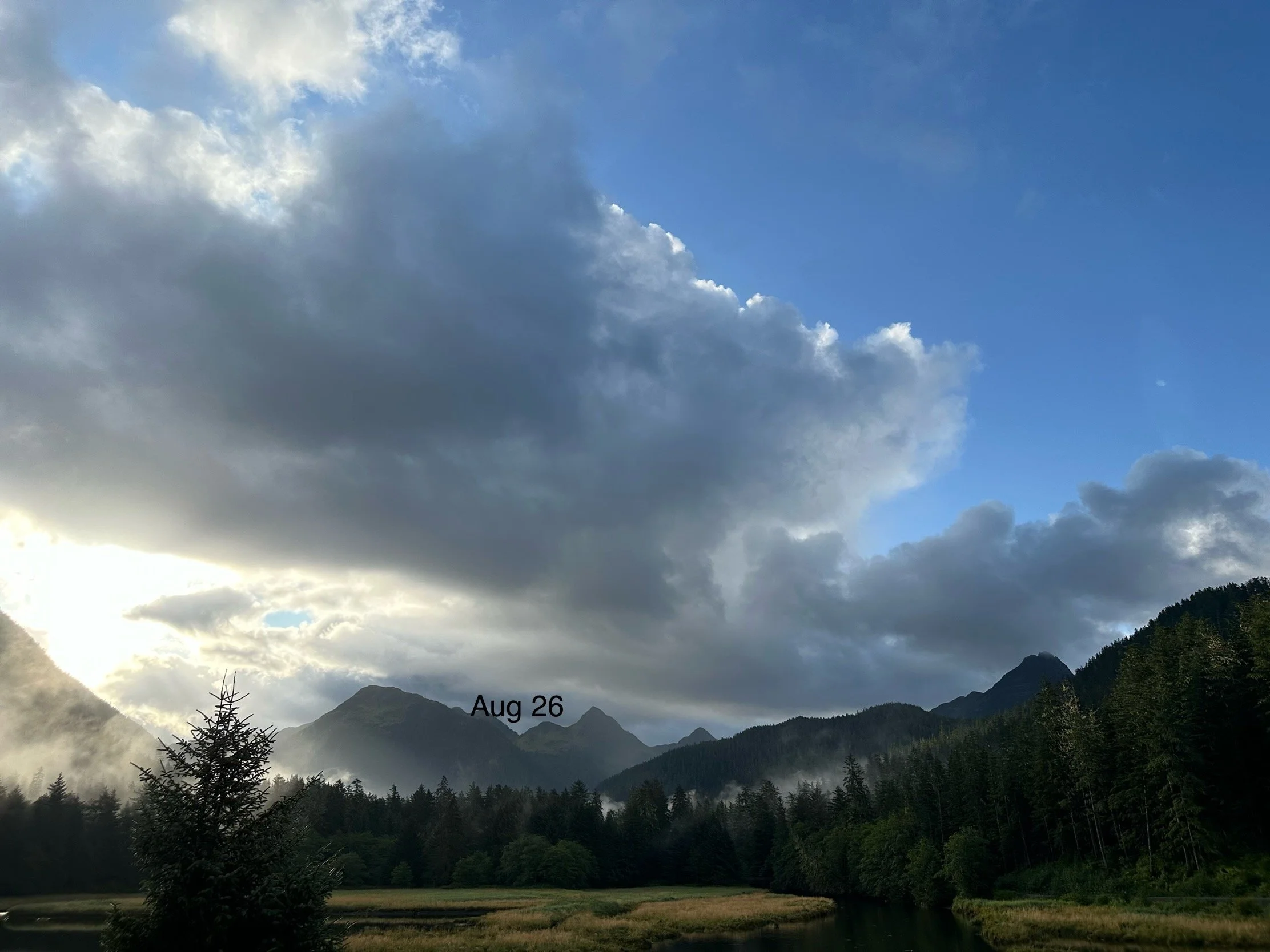 August 26: Day 3 on the ferry and perhaps the best one yet. That’s hard to say though as each has been great. I was on the deck at 4:30am. We were in a very narrow channel. The shadowy shore slid by silently and the water was like glass. My eyes adjusted and the surrounding mountains were wearing shawls of fog. The clouds parted a little and one bright star and a half moon beamed down. The light that early is very blue, strangely saturated to a rich navy. Even the fog, though white, shared a tint of blue. I was taking photos that have a very abstract look due to the long exposure and the forward movement of the ferry. But I don’t have any way of sharing them with you yet. I sometimes have cell coverage, but such a small amount only text will transmit. Photos are out of the question. By 6:00am we were at the dock of Sitka. Because we were there for three hours, we could get off and walk. I headed down the road to a large creek at pouring into the ocean. The King salmon had just arrived and were stacked like commuters on the NYC subway as they tried to enter the creek to spawn. The eagles and gulls lined up for the all you can eat buffet. Sitka must be the wettest place I’ve ever been. It almost looked tropical the veg was so rich and dense. Tonight I will reach Haines Alaska which is my port. I’ll figure out some way of sleeping in the car for the rest of the night. Stay tuned for tomorrow’s update on how that works out Thanks for following along! Ferry Food: The food onboard is better than the ferries I’m familiar with. There are the usual burgers, fries and such. But for each meal there are specials. These are cooked aboard, not of the frozen nuggets in the deep fryer ilk. For example, last night was a chicken curry made by the Nepalese chef. She started in the afternoon preparing all the spices. The fans announced the fact across the outside decks. The previous night was a turkey dinner with roasted root veg, mashed spuds (real ones) and gravy. Breakfast: the specials include an omelette - different each day - and some form of eggs in a baked biscuit, croissant or bagel. While the portions are enough to feed two or three people, the food is tasty and real.